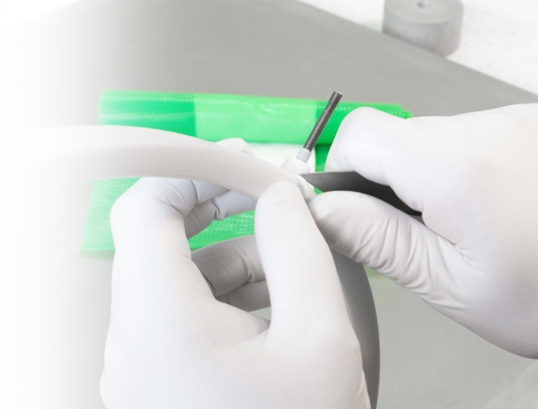 La confection est un atelier où l’ensemble des manipulations effectuées nécessitent des « petites mains ». Ici, il s’agit d’optimiser, d’adapter ou de transformer un produit silicone « brut » pour en faire un produit fini en accord avec les besoins et attentes clients.